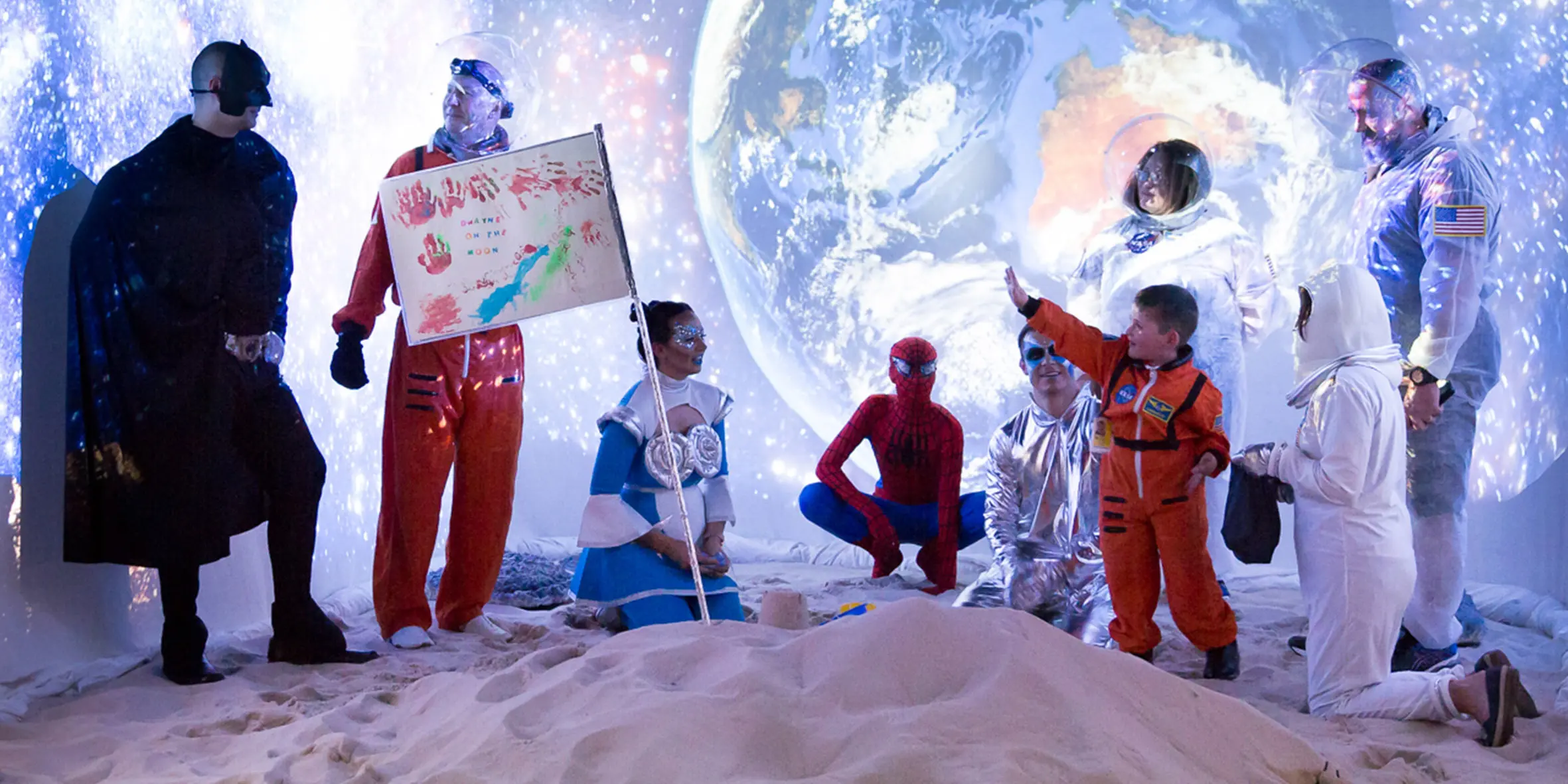 A nearby hangar provided the perfect lunarscape, where Dwayne planted his hand-drawn flag on the moon and hunted for moonrocks with aliens and his favourite superheroes.