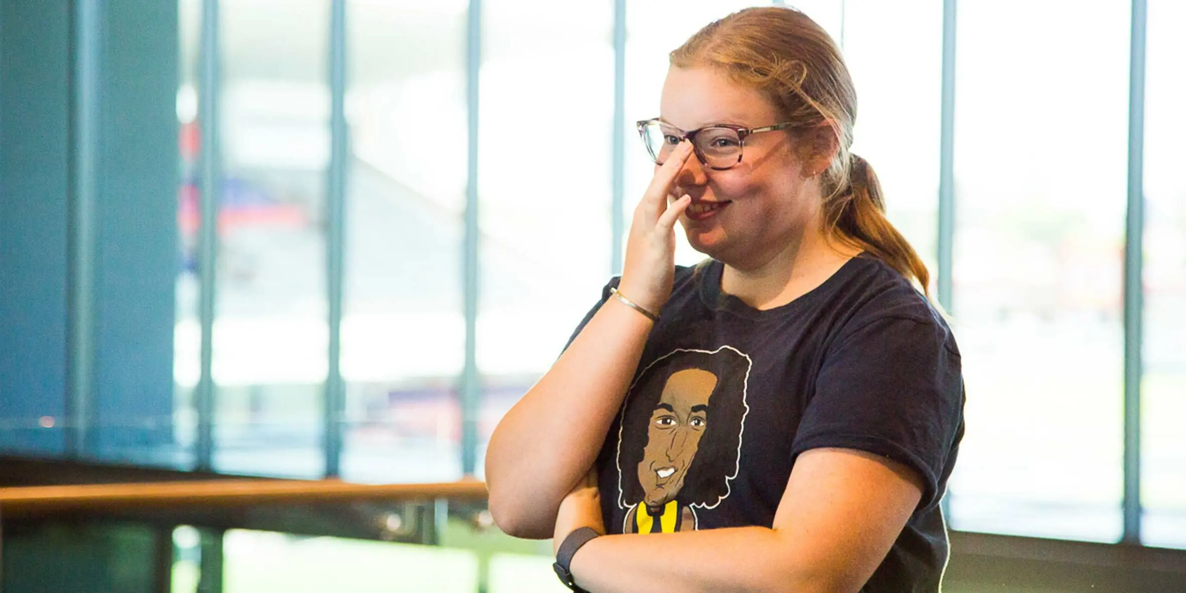 201cm tall Nic spent a lot of time talking and getting photos with Jacinta before asking her to come down to the Eagles gift shop to pick some merchandise to take home.