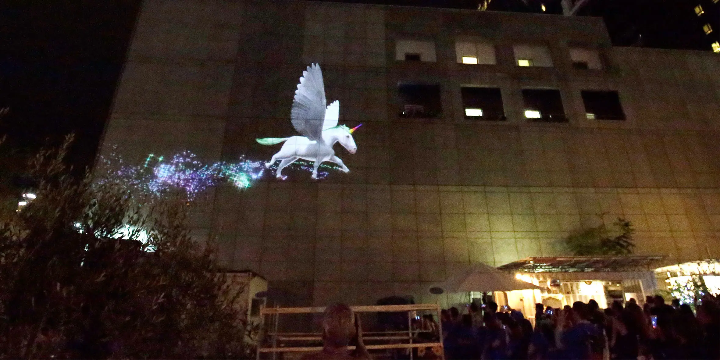 Against a backdrop of the iconic Arts Centre, with its spire glowing rainbow-colours in the twilight, hundreds of well-wishers looked on as Scarlett’s unicorn gently floated to earth.