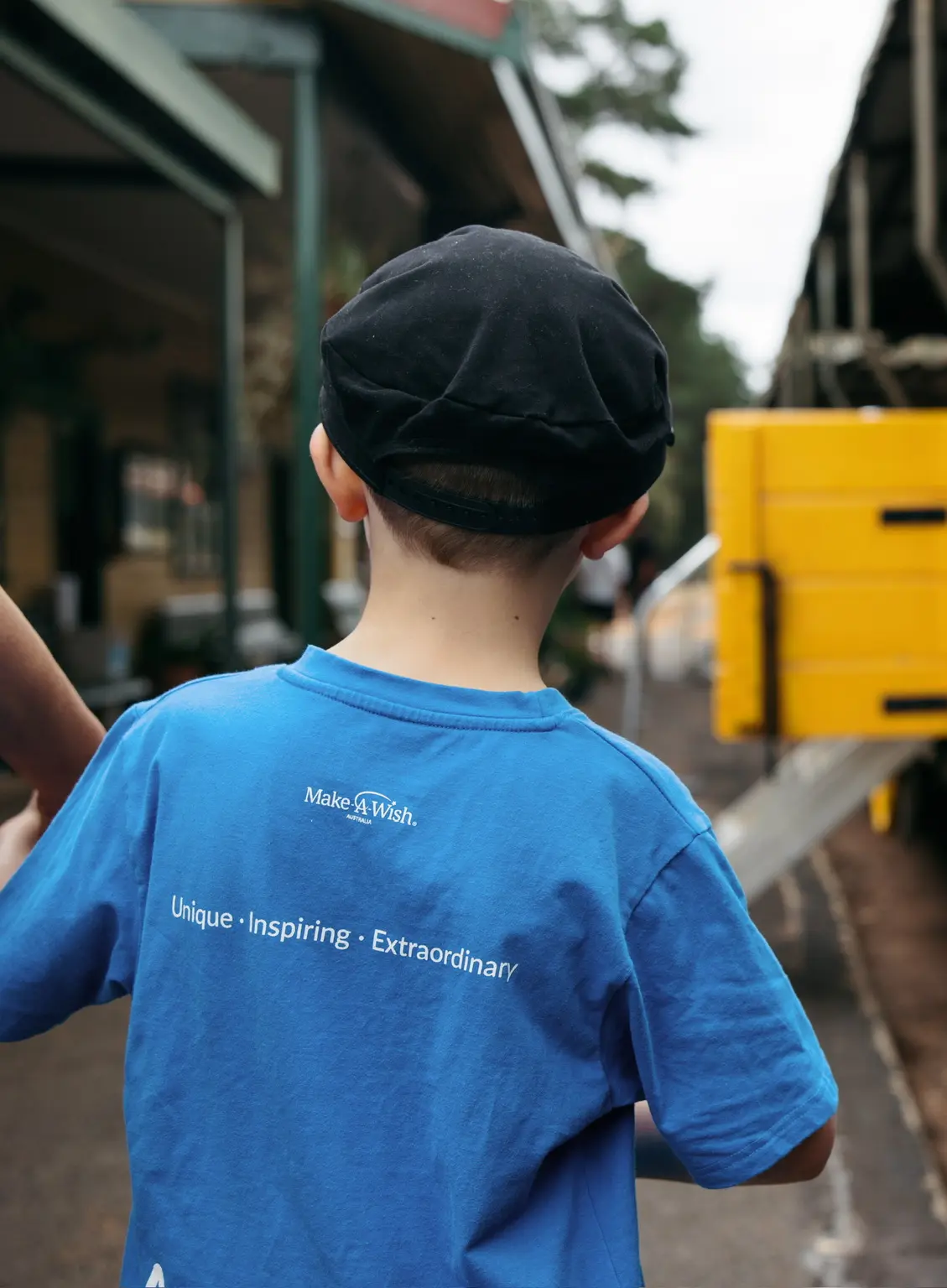 But through it all, his spirit never dimmed. Hunter's wish for a train-themed holiday across Australia came true thanks to generous supporters like you. His wish experience included visiting his cousins in Western Australia and riding the historic Hotham Valley Railway through the forest.
