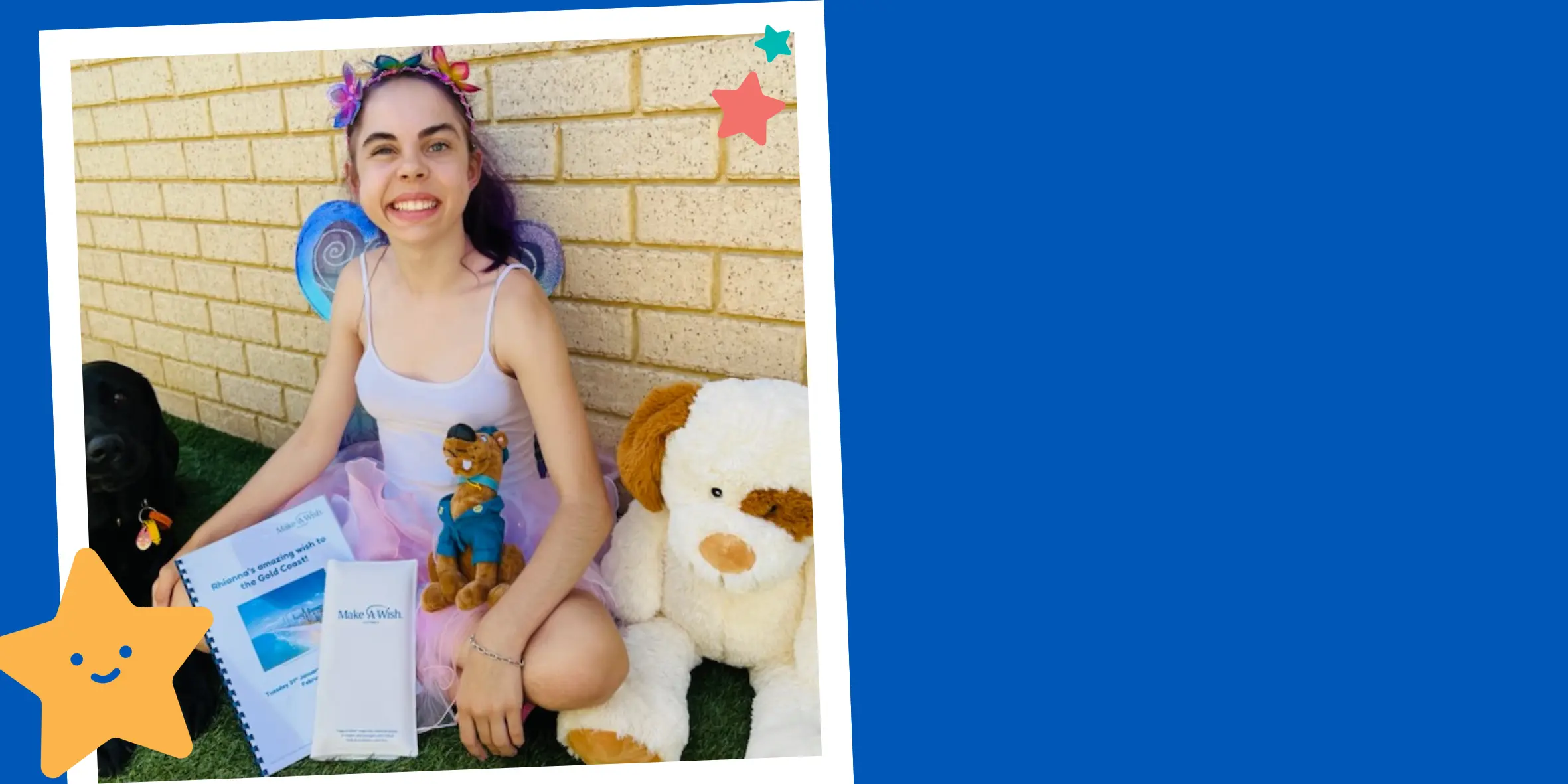 When Rhianna first wished to see Scooby Doo and dolphins at Sea World (whilst dressed a fairy) in August 2019, she was on dialysis awaiting a kidney transplant. Soon after, Rhianna suffered a cardiac arrest and lost her ability to walk and talk.