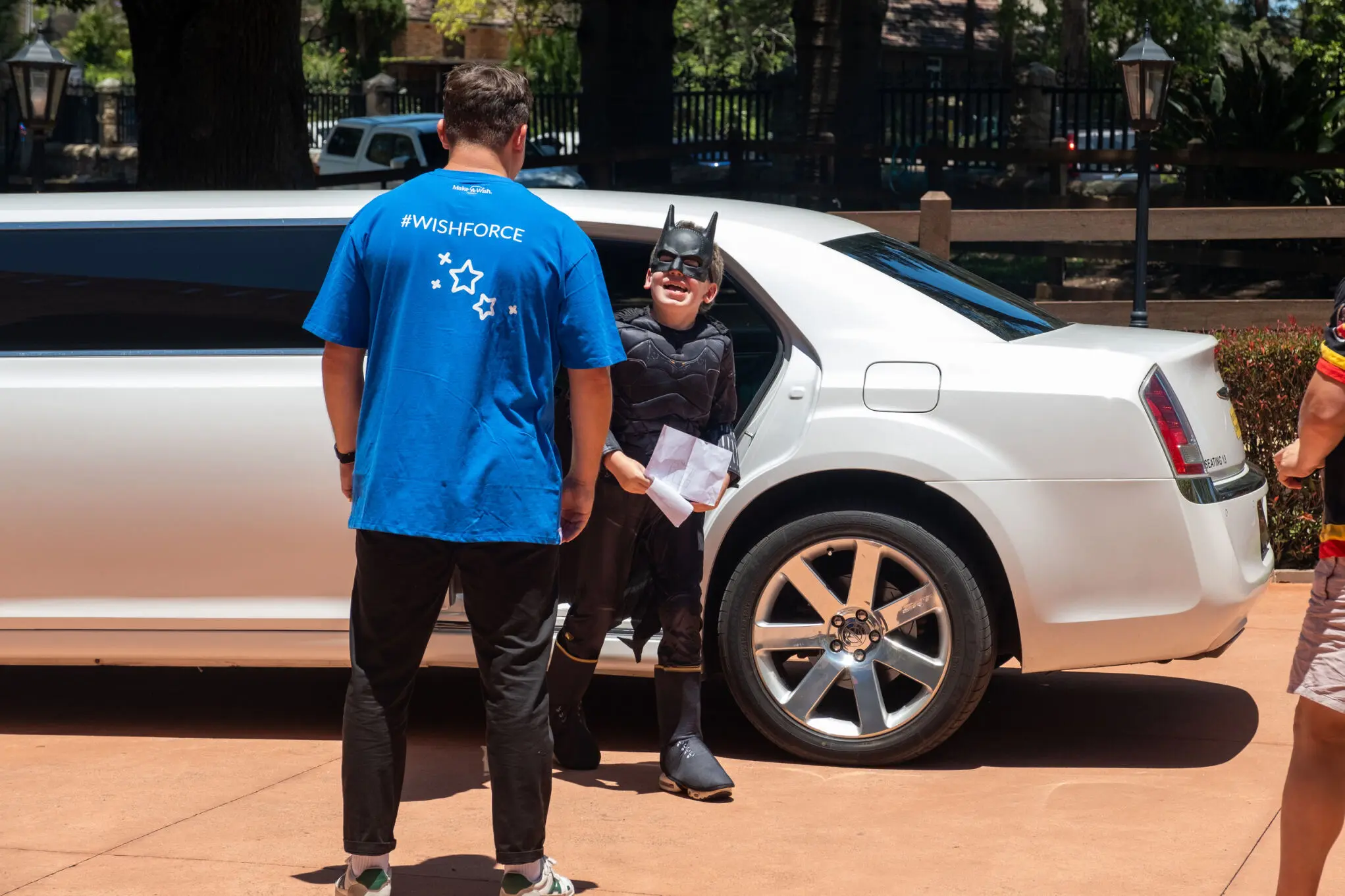 In the lead up to the wish, Brax was going to school and telling all his friends he was going to meet Batman. He didn't sleep at all the night before, and woke up at 6:30am the day of the wish and looked outside and said 'I think I can see Batman's car!