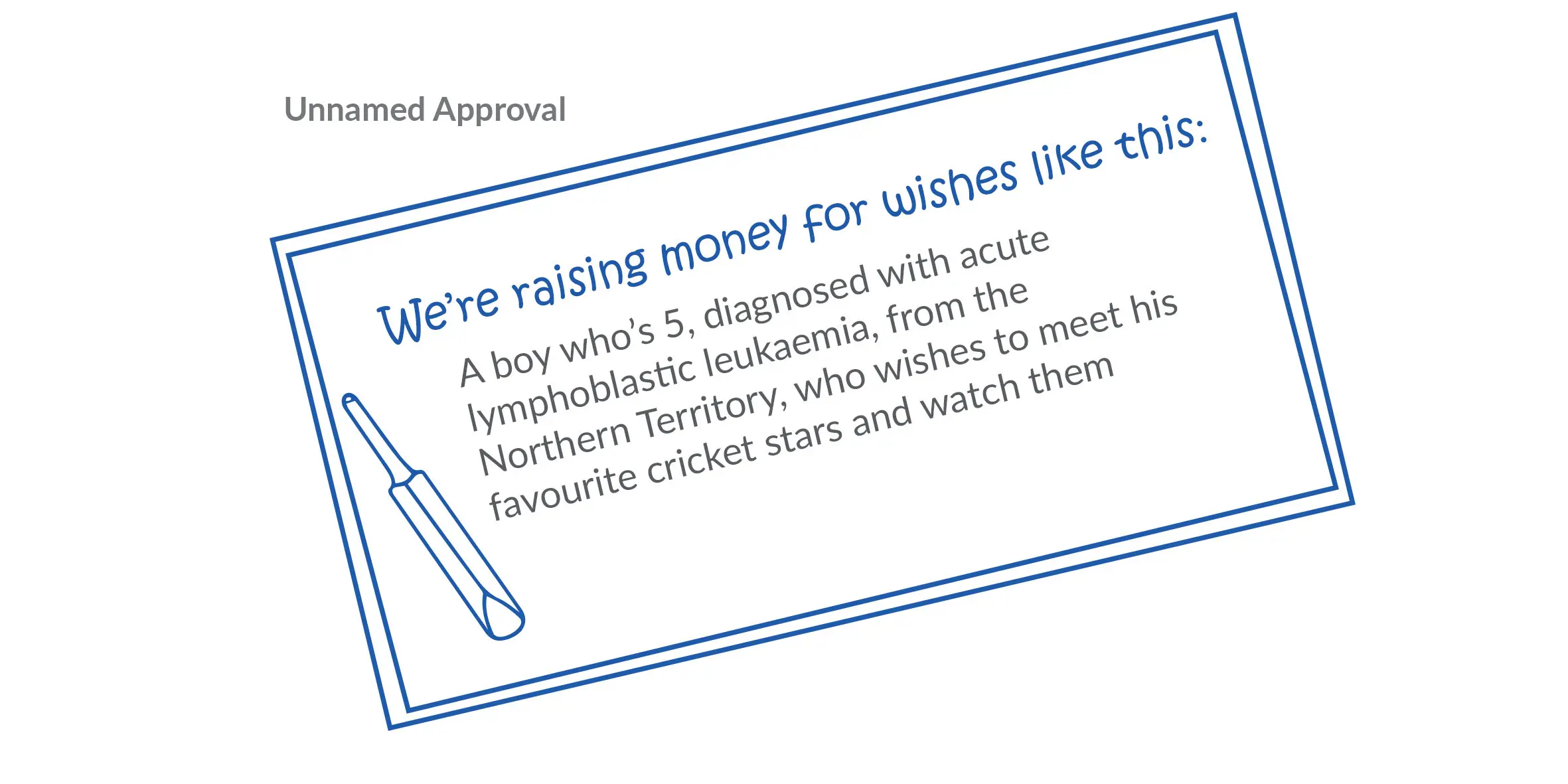 Your wish story could appear in places like our website, on our social media channels and in our newsletters. It might also be printed onto leaflets and banners for use at different events.